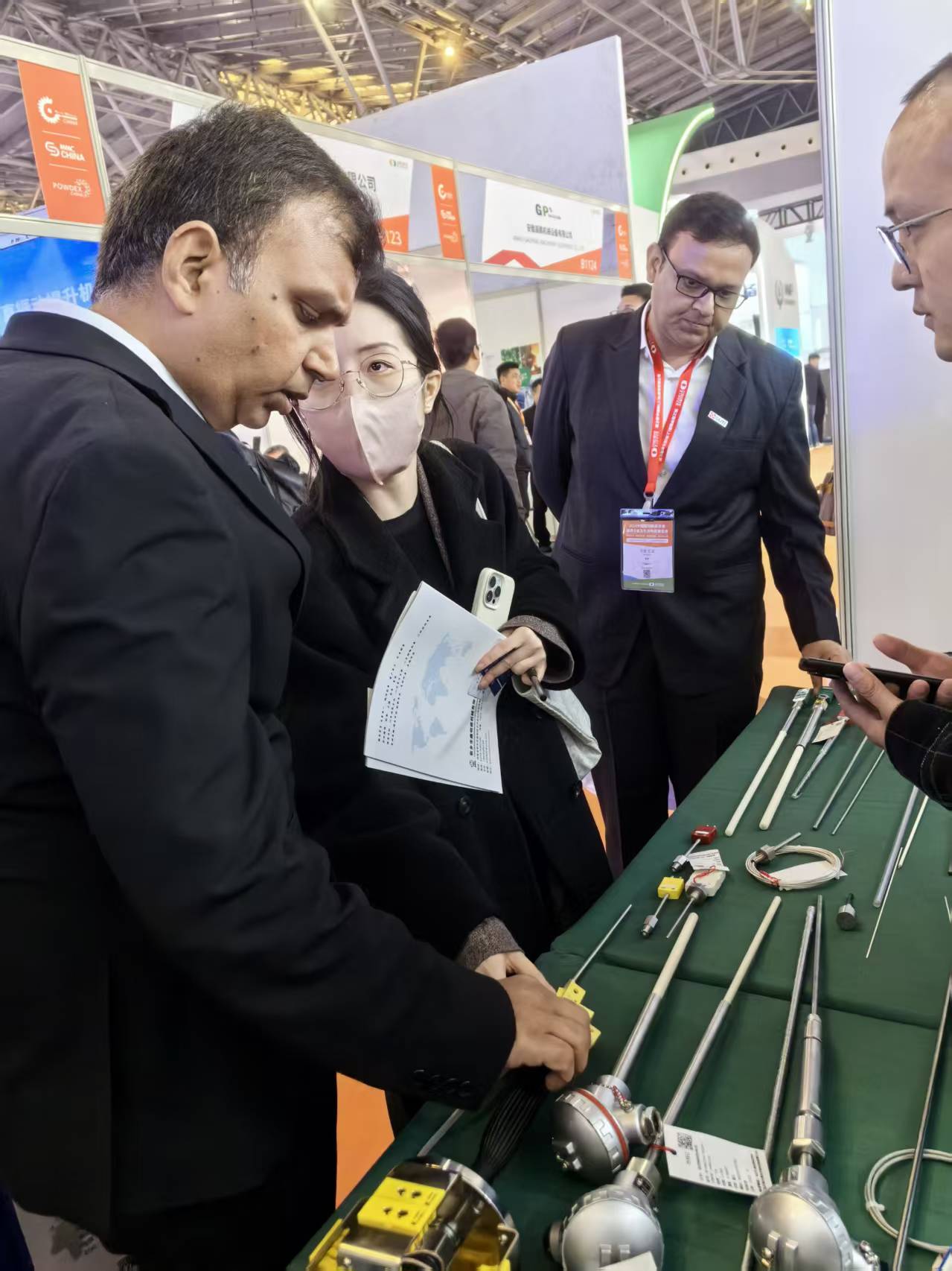 展會期間,博圣儀器儀表的B1209展位持續(xù)迎來行業(yè)觀眾駐足:國內先進陶瓷企業(yè)、裝備制造商的技術負責人,圍繞 “陶瓷生產溫度精準調控” 與現(xiàn)場團隊深入研討;同時,多位國際客商也專程到訪展臺(如圖中海外客戶),重點咨詢高溫傳感器的定制適配方案,現(xiàn)場交流覆蓋產品性能、場景適配、批量合作等多維度。